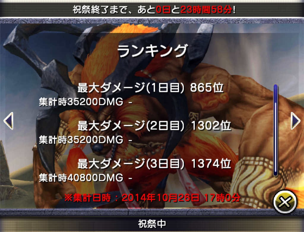 結局フィーバーの関係で毎日44体ずつくらい倒しちゃったけど、日にち切り替わるたびにえらいところまで落とされてるので大丈夫かこれって感じになってました