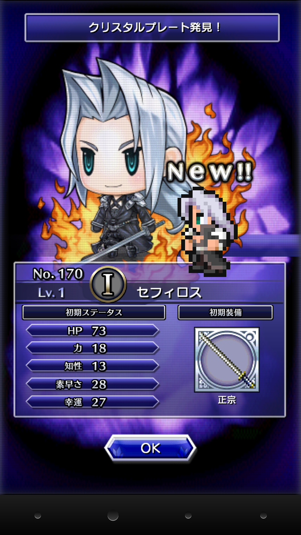 何十連もしてカオス出ないって嘆いてる人がたくさんいるので、セフィロス出てくれたのはかなり運がいい方なんだろうなと思います