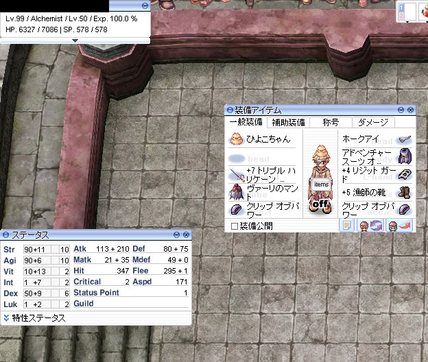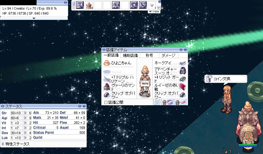 ゲフェンコイン15枚を経験値に突っ込んでしまった直後に撮ったので94になってます