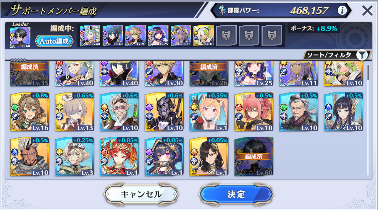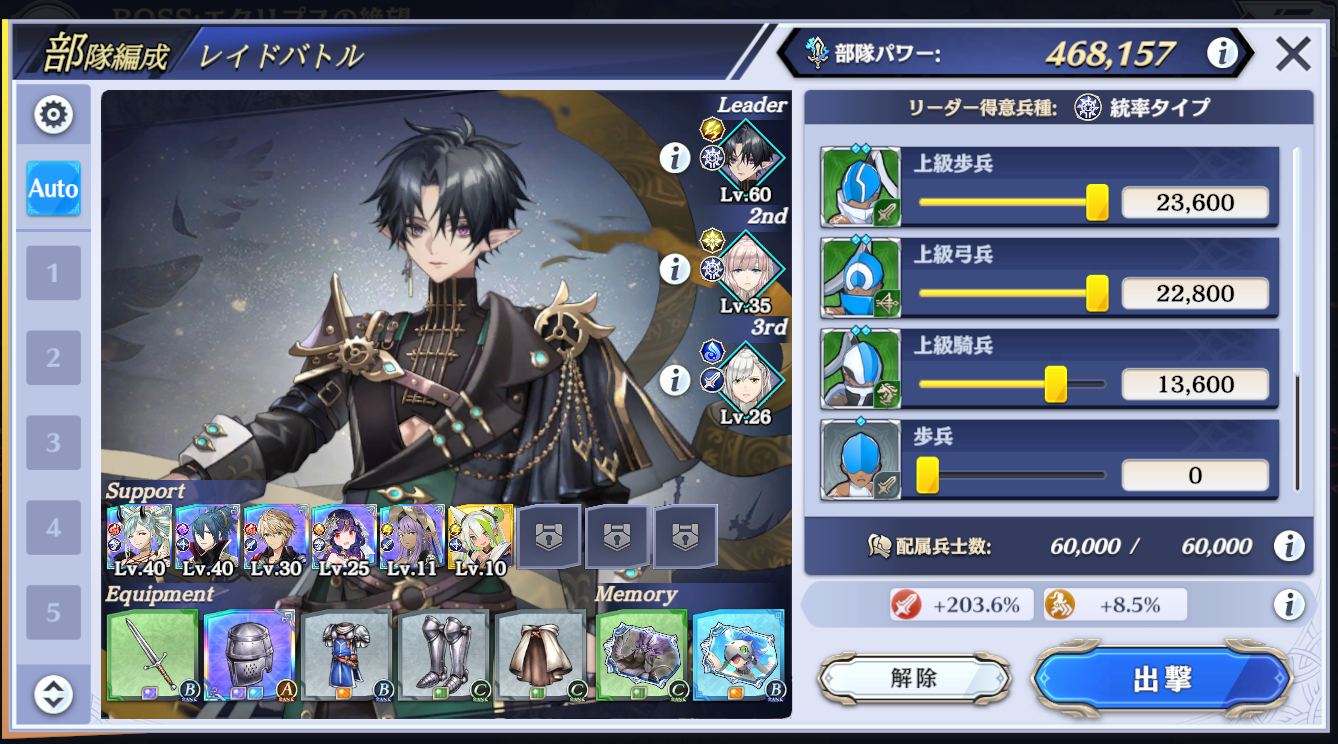 兵種的に弓が向いてるのはわかるのですが、それでオート編成するとLv10のコン=ドウィンがリーダーにされるっていう(
