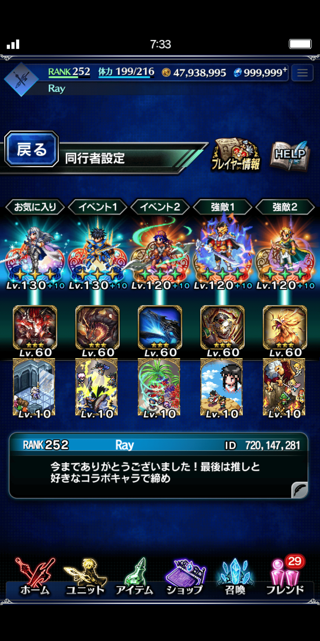 EXボーナスも完凸したのは奇跡ロック・魂ライト・FF7Rクラウドくらいかな?