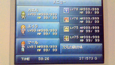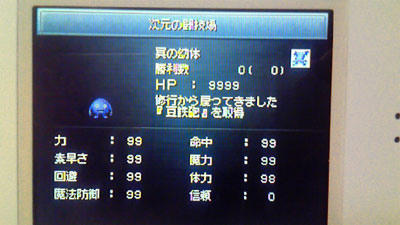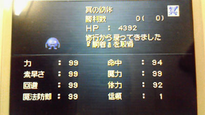 HPはあんまり気にかけなかったので4000程度しかないんですが、力/すばやさ/回避/魔法防御/魔力が99、命中と体力も90以上と言う驚異的なステになりました